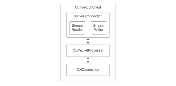 The ConnectionClient class has a key role in setting up and keeping TCP socket connections with the CXL Switch. This facilitates the important movement of transaction layer packets in OpenCIS.