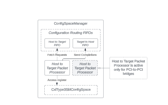 The ConfigSpaceManager class manages Configuration transaction packets. It uses these packets to set up and control the device according to PCI Express and CXL specifications.
